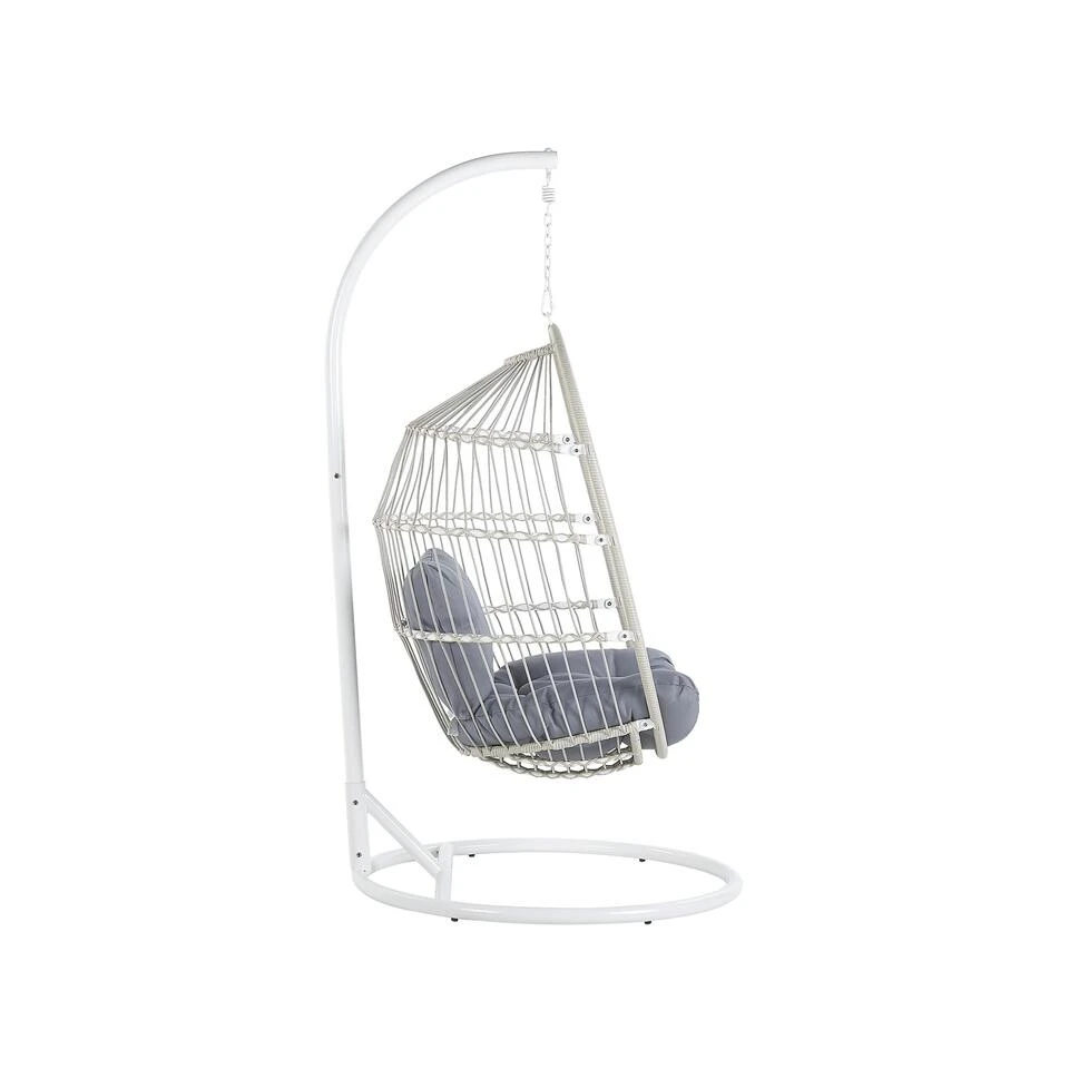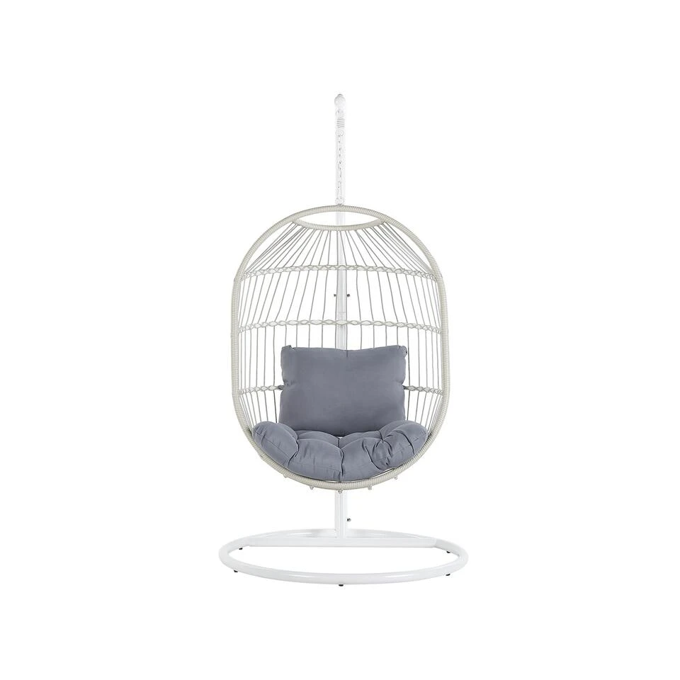 Ronde hangstoel met stalen frame voor binnen en buiten, inclusief kussens. Het opvallende ontwerp van deze hangstoel van robuust polyrotan en polyester zorgt voor een romantisch en zorgeloos vakantiegevoel op de veranda of in de slaapkamer. De gevlochten stoel is opgehangen aan een zware metalen ketting, die op zijn beurt is bevestigd aan een zeer stabiel stalen frame. Zo biedt de stoel rustgevende, subtiele schommelingen en laat je zweven op het comfortabele, waterbestendige zitkussen, zoals op een wolk in de lucht.