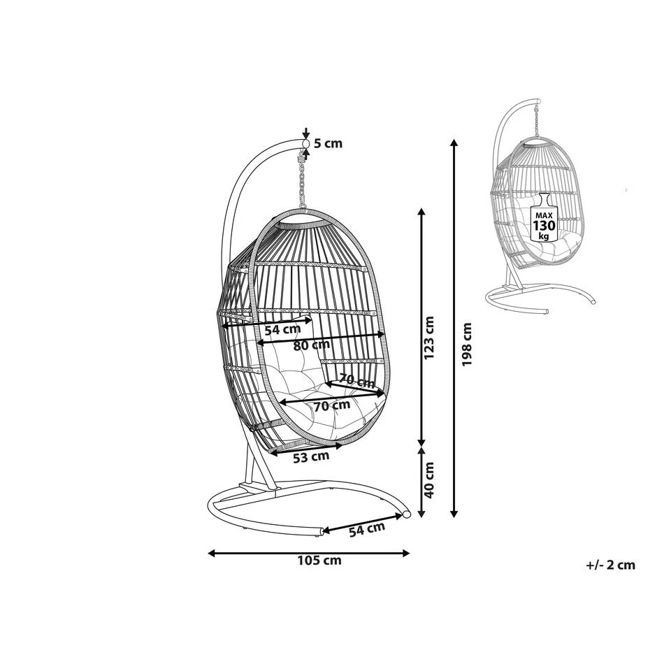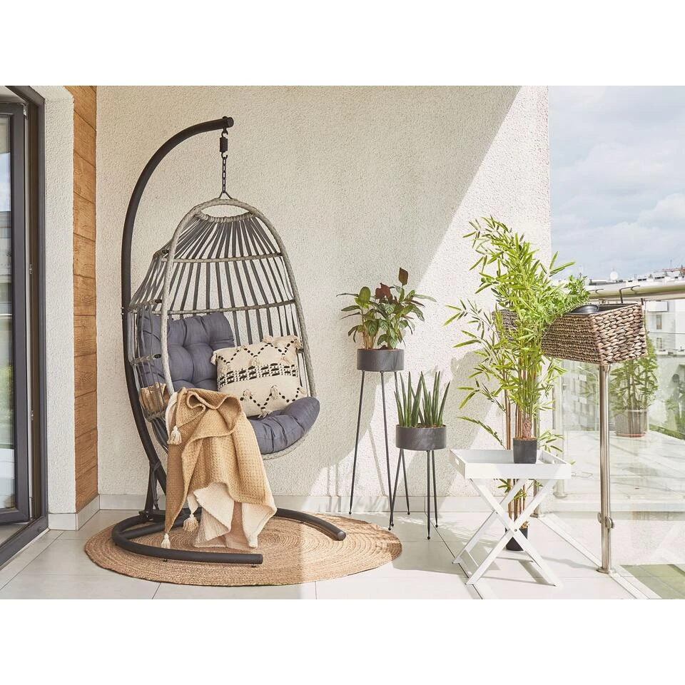 Beliani Hangstoel SESIA – Grijs Polyester, Pe Rotan