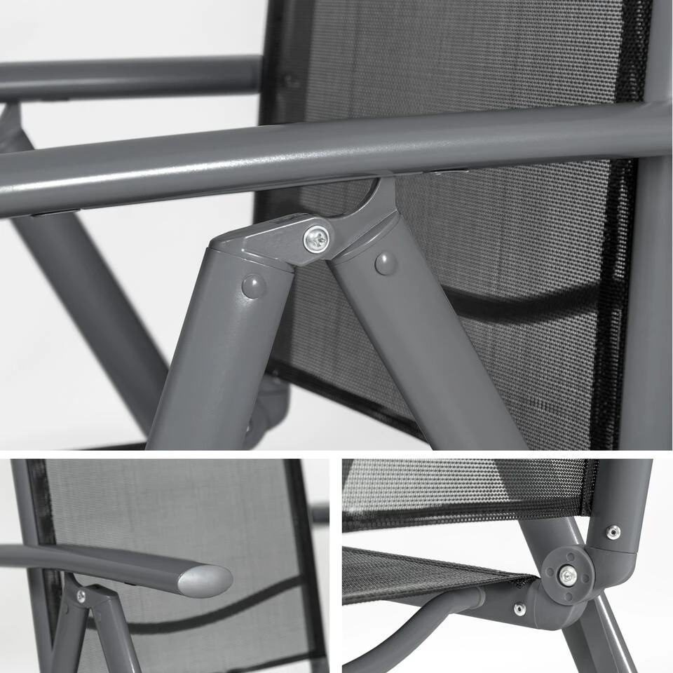 Tectake – Aluminium Tuinstoel Set Van 2 Stuks – Tuin Stoel Antraciet – Zwart